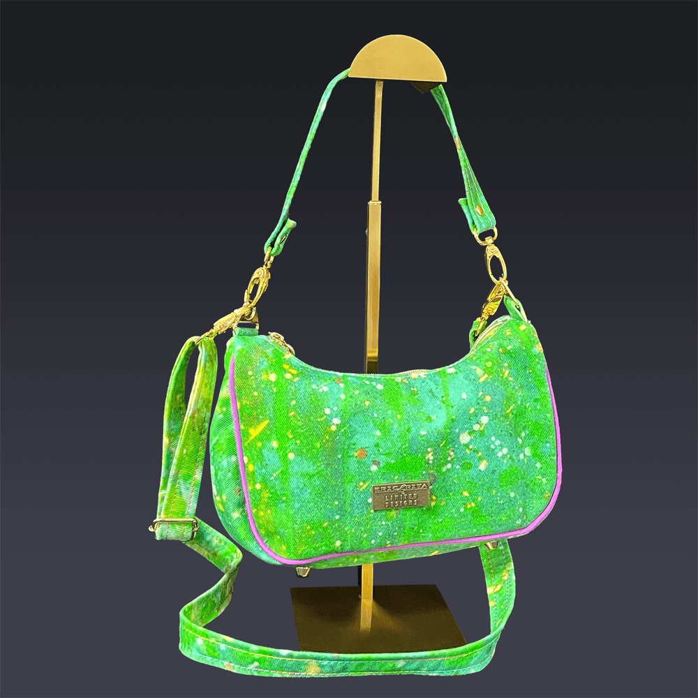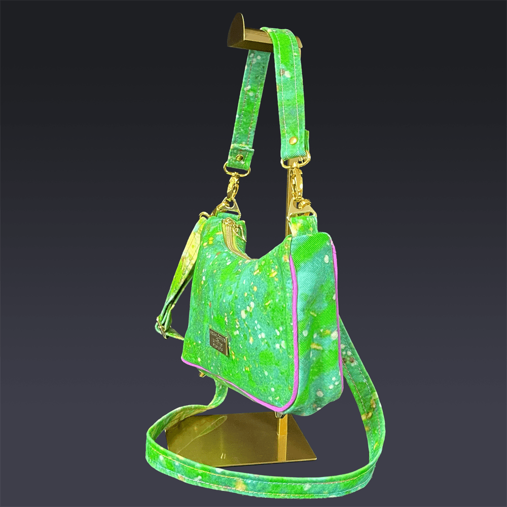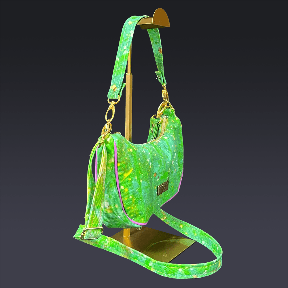 Linda Baguette In Green Denim with Purple Piping